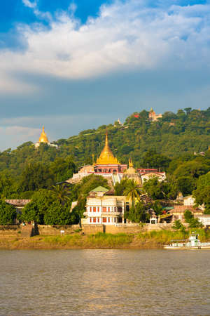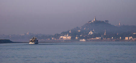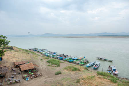 Sagaing,Myanmar-March 16,2011 : Landscape of Ayeyarwaddy river and Sagaing hill in Sagaing ,Mandalay of Myanmar.