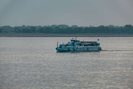 River Ayeyarwady, Myanmar - 20 January 2010: people on the deck of a passenger ship on the river Ayeyarwady on Myanmar