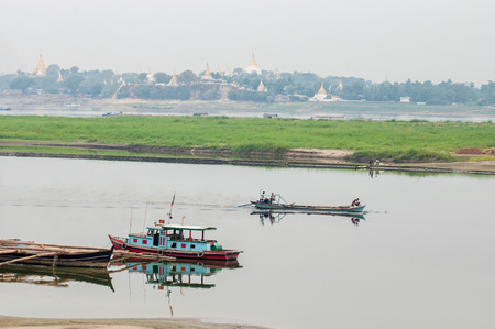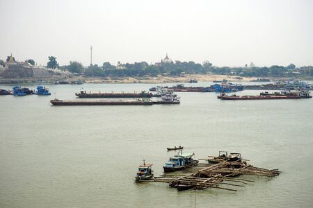 MANDALAY, MYANMAR - CIRCA APRIL 2017 Boats on the Ayerawady river