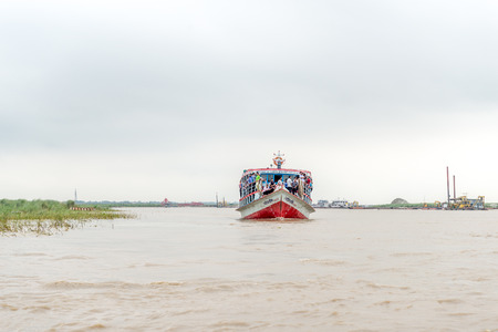 Yangon, Myanmar - March 14, 2011: The boat transport from main land to Yele Phaya temple (Pagoda on a small island) in Syriam, Myanmar.