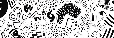 Creative doodle wallpaper background art header with different shapes and textures.
