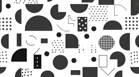 Black and white geometric shapes forming seamless pattern