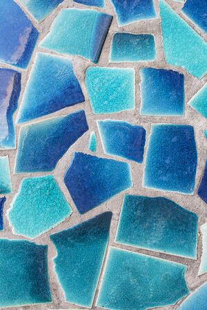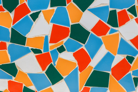 Mosaic on the big wall of different shapes and colors. Abstract colorful mosaic texture background.