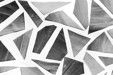 Mosaic of bright geometric shapes on a light background. Space for text