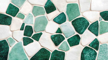 An Abstract mosaic of green and white stones creating textured pattern
