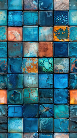 Colorful abstract background showing textured tiles in varying shades of blue and turquoise, ideal for artistic projects and creative backgrounds