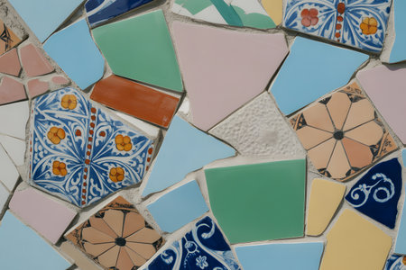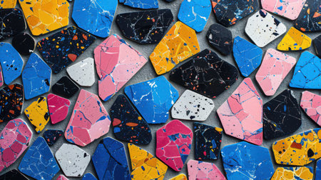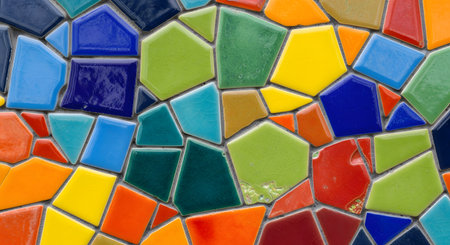 This image showcases a vibrant mosaic pattern featuring an array of colorful tiles in various shapes, perfect for artistic decoration and design inspiration.