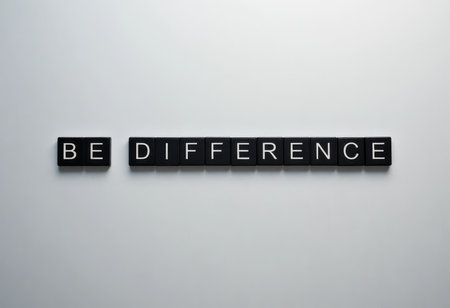 A modern and minimalistic composition featuring letter blocks that spell out 'Be Difference.' This image embodies the essence of individuality and inspires personal growth and creativity.