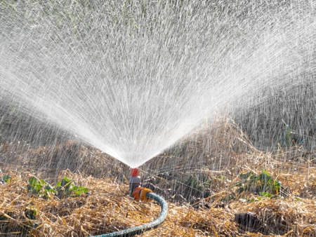 Water springer plants Working in the Agricultural farm, Closeup texture background of water.