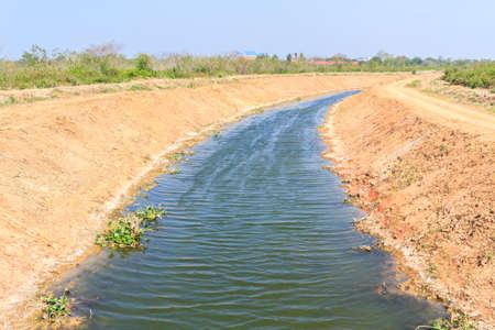 The irrigation canal in the countryside of Thailand. The irrigation canal is used to irrigate crops.