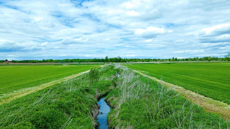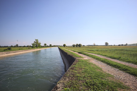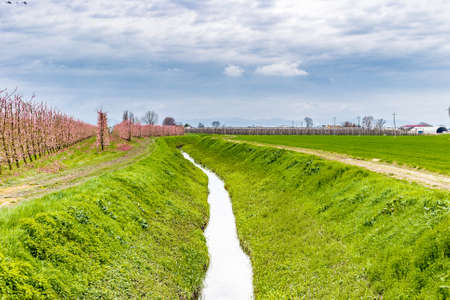 irrigation channel passing through cultivated fields in Italy