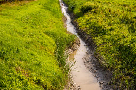 nearly dry irrigation channel in countryside