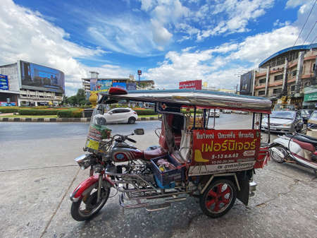 Udon Thani, Thailand - November 19, 2019: Street life and traffic scene at a roundabout in center of Udon Thani, city of north east Thailand
