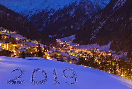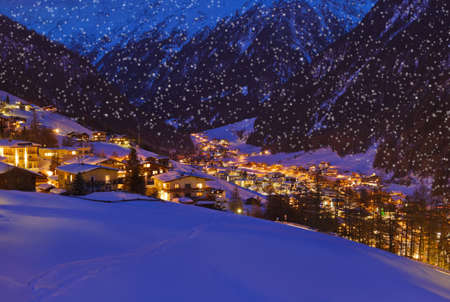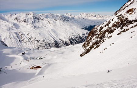 Morning winter Dolomiten mountain landscape. Ski resort Obergurgl - Hochgurgl, Tirol, Austria. All people are unrecognizable.