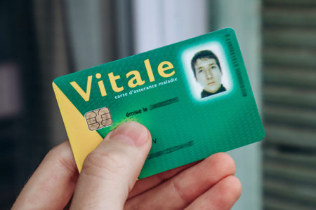 Young man's health insurance card of the national health care system in France, named Carte Vitale (translation Vital card)