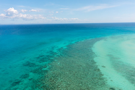 Tropical seascape with blue sea surface with coral reefs in Bantayan, Cebu. Philippines.
