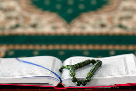 Holy book of Quran with rosary, Ramadan concept