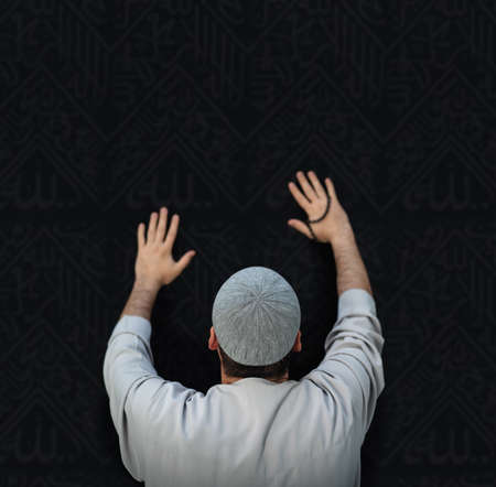 muslim man keep hand in praying gestures during ramadan, Close up