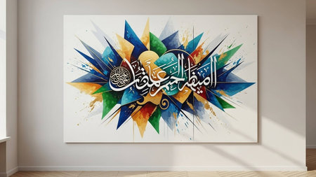 Arabic calligraphy on a poster in a room, 3D rendering