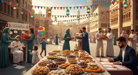 Group of multi ethnic muslim people celebrating Eid al-Fitr