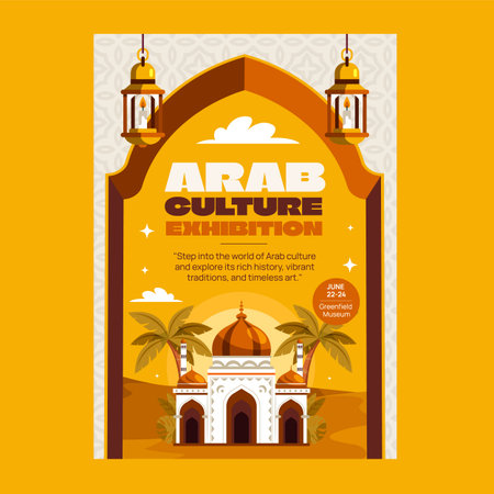 A colorful islamic new year greeting with a city backdrop, AI