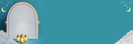 3D rendering of Islamic lamps, Muslim feast of the holy month of Ramadan Kareem illustration background,Three-dimensional copy-space for print banner poster or websit.