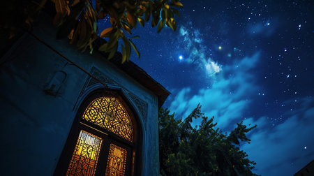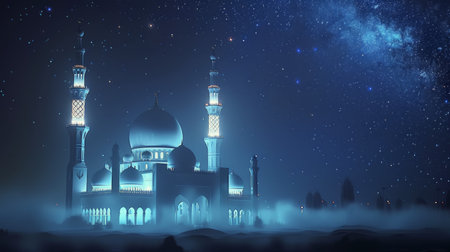 A mosque against the background of the night sky. Concept of celebrating a traditional religious holiday