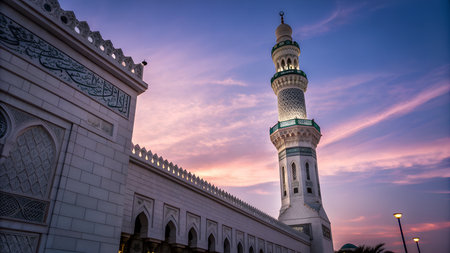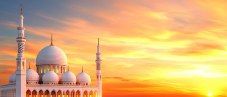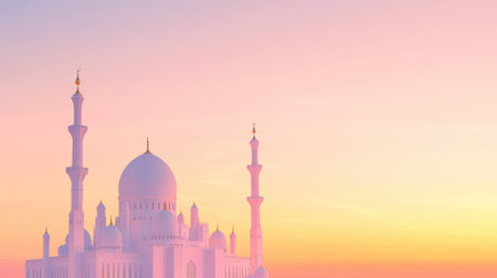 stunning mosque at sunrise, showcasing intricate architecture and vibrant colors.
