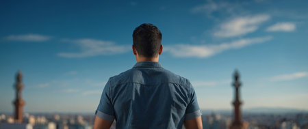The image captures minarets emerging from a sea of clouds under a gradient sky. The architectural structures showcase intricate designs. Soft, diffused lighting creates a dreamlike atmosphere. It is suitable for design, travel, or conceptual projects, potentially for religious or cultural themes.