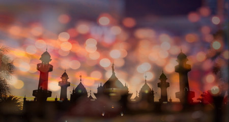 Silhouette of mosque with bokeh background. Ramadan Kareem