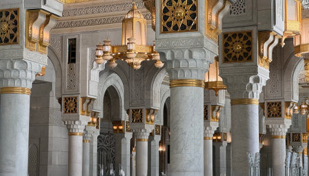 Close-up view of a mosque dome showcasing intricate calligraphy and ornate designs. Highlighting the architectural beauty and cultural significance of this religious structure.