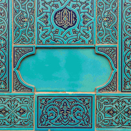 Intricate Islamic Architectural Detail of Sheikh Lotfollah Mosque Facade, Isfahan, Iran.