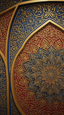 Detailed decorative pattern with gold and blue hues, highlighting intricate craftsmanship and artistic design, perfect for cultural themes and visual storytelling