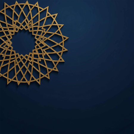 Elegant showing intricate golden islamic geometric pattern on dark blue background keywords: islamic pattern, geometric pattern, arabesque,...