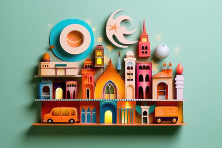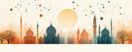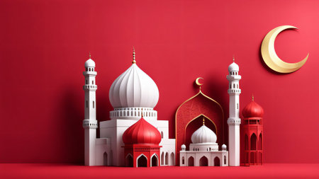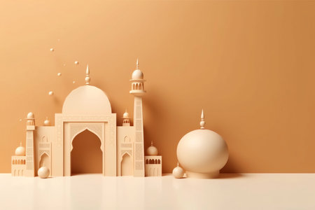 3D Render illustration of a Mosque Design with Space of Your Text. Eid Mubarak celebration.
