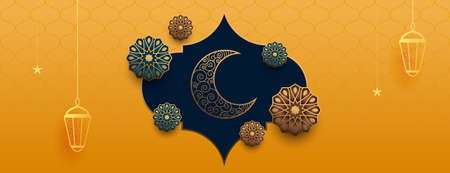 beautiful moon and mosque golden islamic banner design