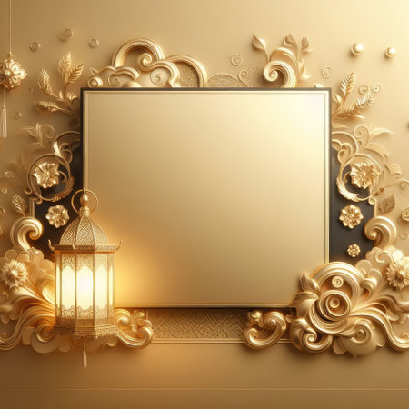 Golden Elegance: An Ornate Frame and Lantern with Generative AI.