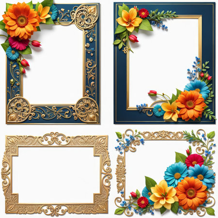 Abstract design of blank luxury frame with floral papper cut around it with Generative AI.
