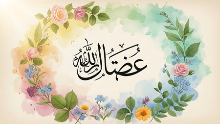 This beautiful image features a delicate floral frame adorned with soft roses and greenery, enclosing elegant Arabic calligraphy that enhances a serene atmosphere.