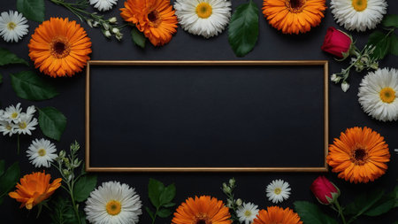 Brightly colored flowers surround a dark blue backdrop, creating a beautiful border that enhances any decorative or artistic project.