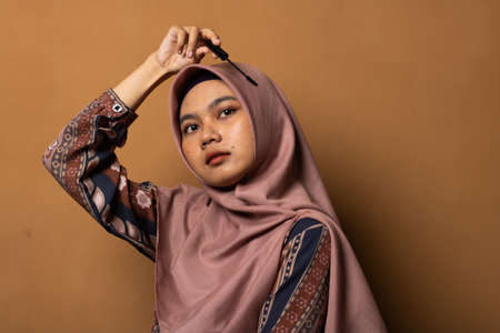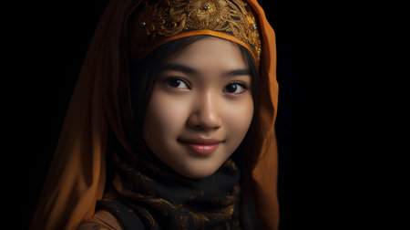 Portrait of a beautiful asian muslim woman in hijab on black background