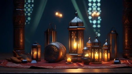 3d rendering of Ramadan Kareem background with lanterns and lanterns