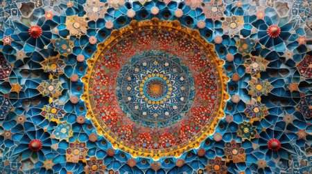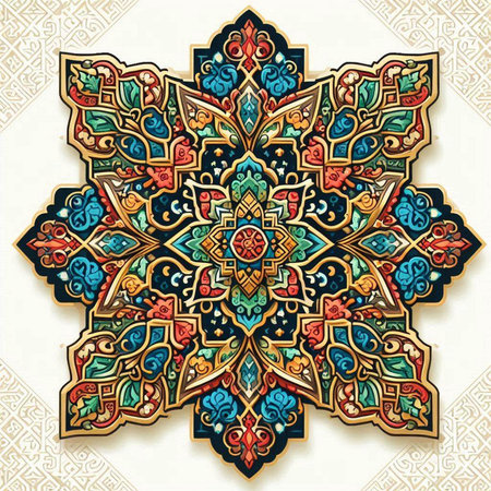 Explore an intricate geometric design featuring vibrant colors and detailed patterns, perfect for showcasing artistic creativity and cultural aesthetic.