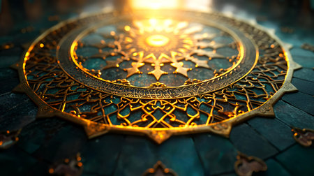 An AI generated illustration of a decorative black and gold circle showcased centrally