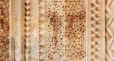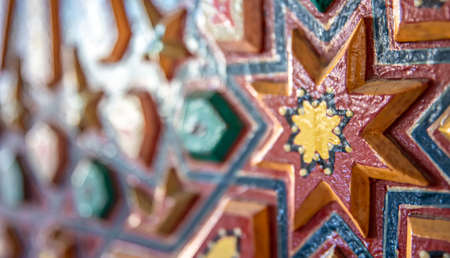 Close up shot of some Arabic decorations at the Alhambra palace in Granada, Spain.