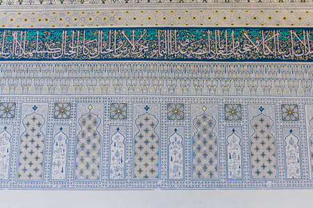 Beautiful white calligraphic patterns Minor mosque in Tashkent, Uzbekistan.