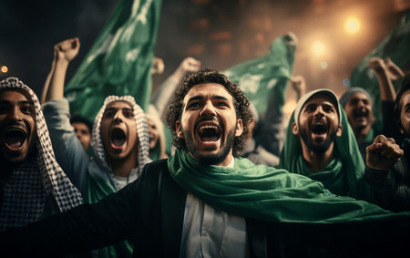 Moscow, Russia - June, 2018: Saudi Arabia football fans on world cup championship in Moscow, Russia