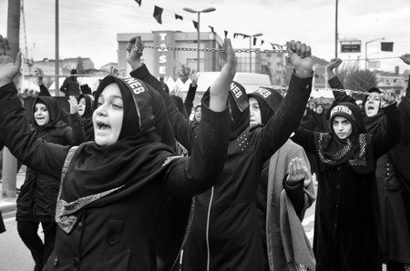 Istanbul, Turkey - November 3, 2014: Universal Ashura Mourning Ceremony. Mourne ashura. Universal Day of Ashura Ceremony, was held in Istanbul to commemorate the martyrdom of Husain ibn Ali, the grandson of the Prophet Muhammad and his 71 friends.