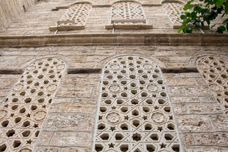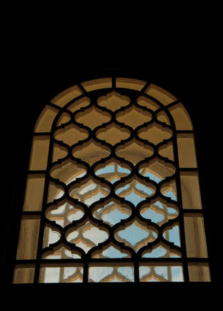 Patterns on a window in a mosque, closeup of photo