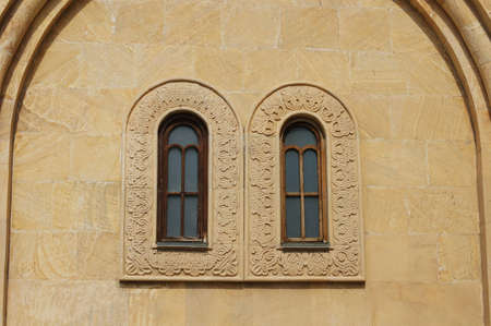 Old Tbilisi architecture, window and exterior decor in summer day
